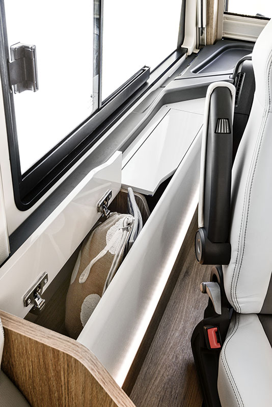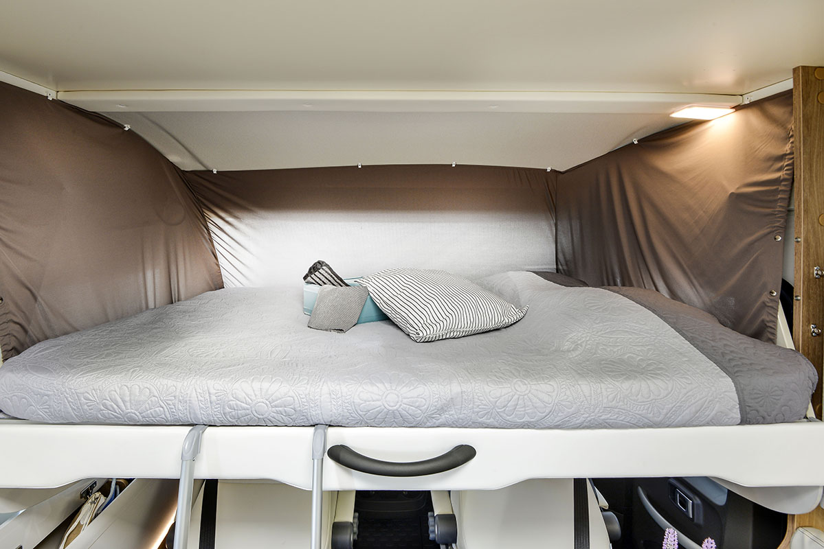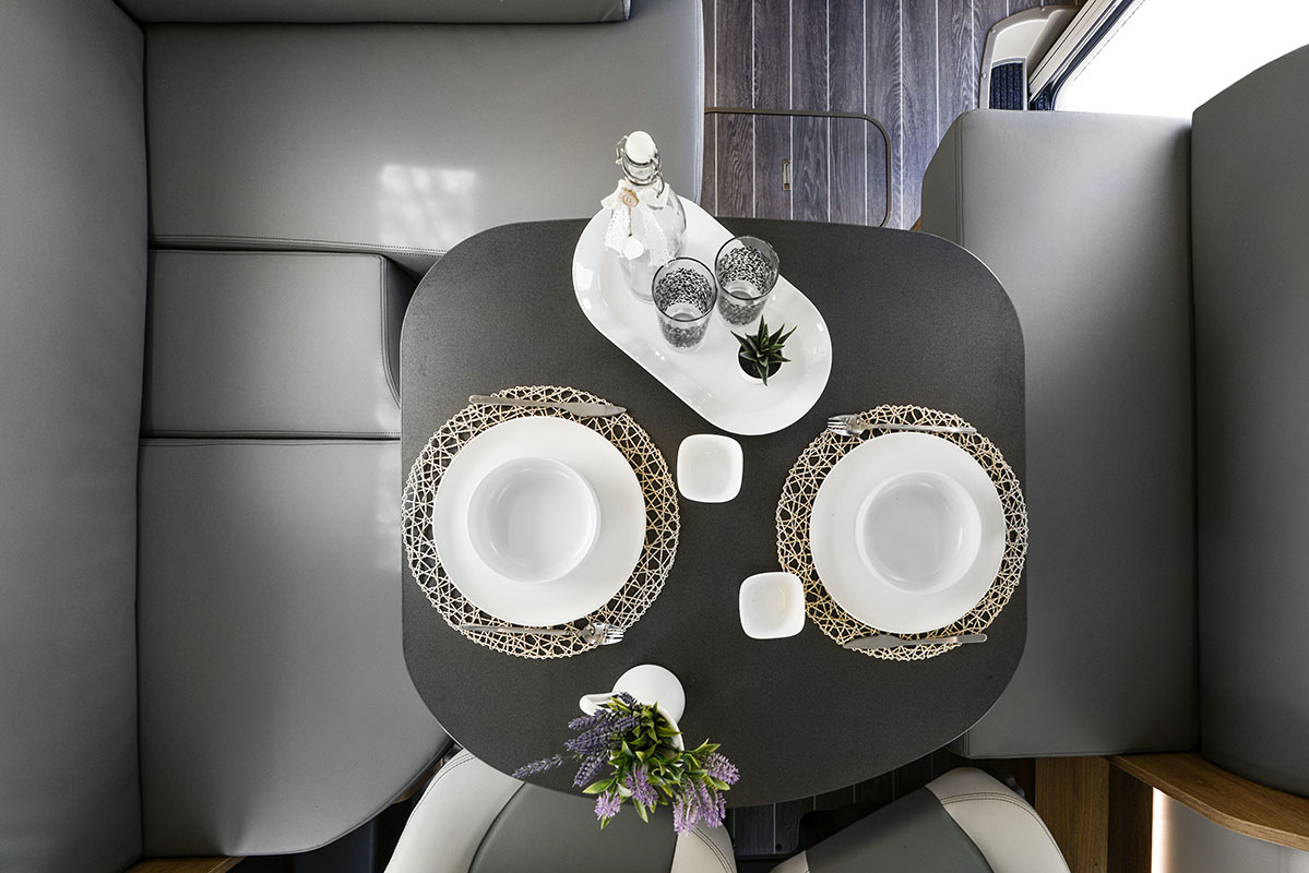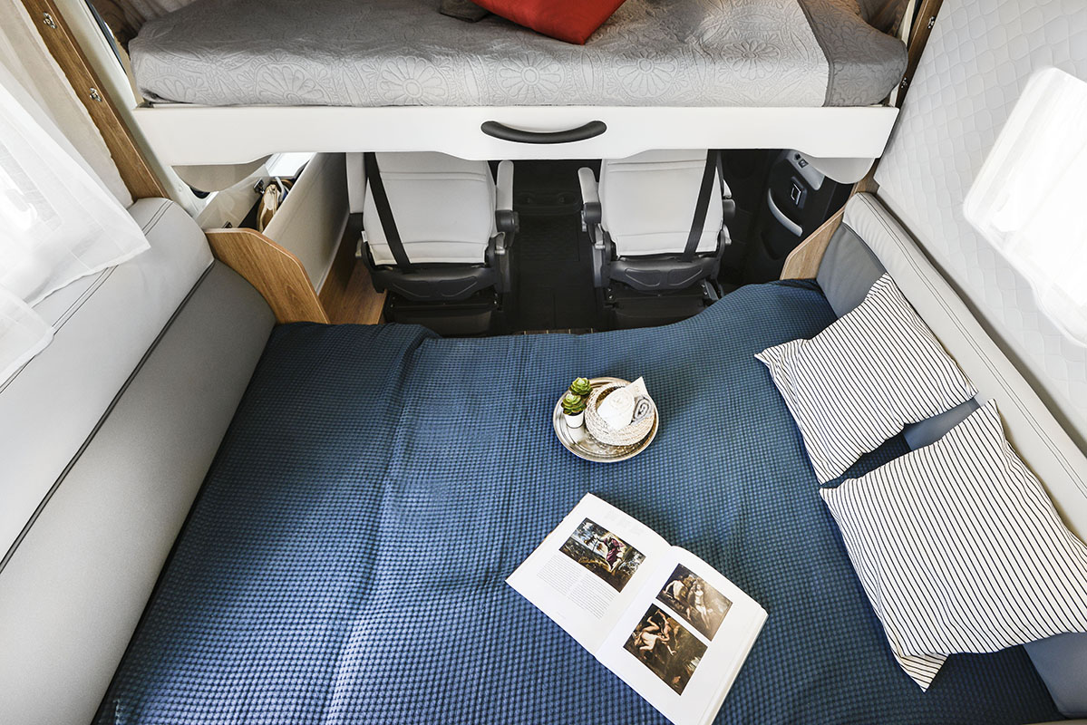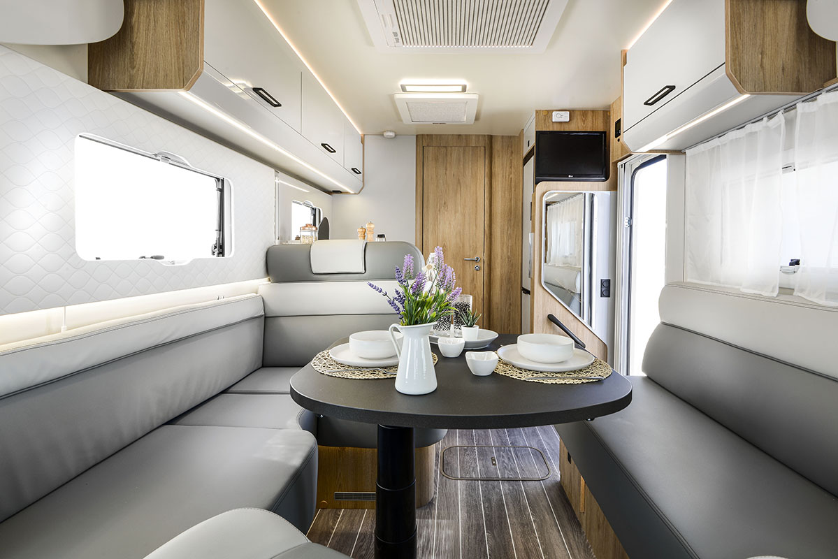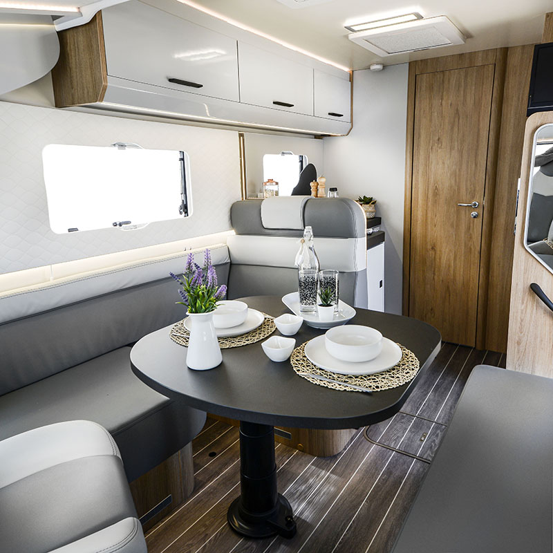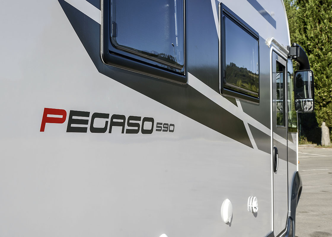 Continuing into the new season as one of the most affordable A-Class motorhomes, the Pegaso 590’s desirable layout and features is one not to be overlooked. Coming in at just 5.99m, the Pegaso 590 benefits from being one of few A-Class motorhomes under 6m and is perfectly compact and easy to drive without compromising on style, specification or comfort. With four berths and four seatbelts, these motorhomes under 6m are designed for couples or small families with a desire to hit the open road and travel to their heart’s content, whilst always knowing a comfortable home-from-home on wheels is awaiting. Despite being a motorhome under 6m, the Pegaso 590 is well designed to feature a spacious rear washroom, L-shaped kitchen area with plenty of space to cook a homely meal, and drop-down double bed, meaning you’ll never compromise on comfort when away in a Pegaso 590.